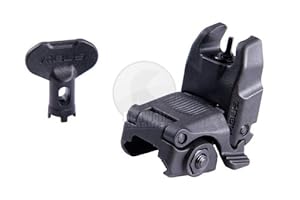 As various weapons can have built in sights, fixed sights or mixed fixed and removable sights Magpul PTS offers MBUS and MBUS2 front and rear sights separately. The rear sights has two selectable peep-hole sizes which are adjustable and the front sight is a post